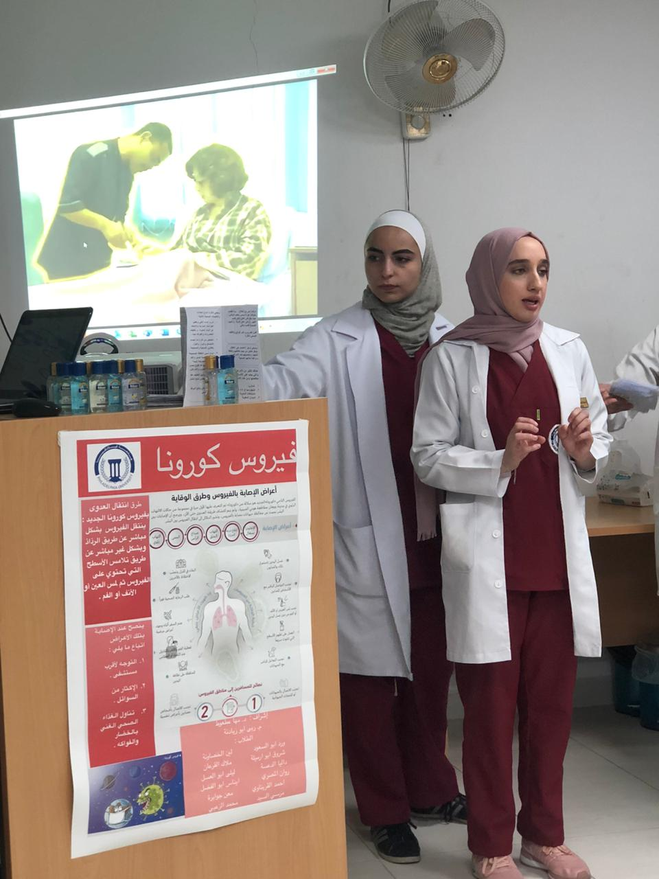 وقدم الطلبة مجموعة متنوعة من النشاطات التوعوية مثل التعريف بفيروس كورونا وكيفية الوقاية منه ، كما وتم عرض فيديوهات توعوية للوقاية من انتشار العدوى ، وقام الطلبة بعرض مسرحي للتوعية بالأمراض المعدية عامة وكيفية الوقاية من مرض الكورونا بشكل خاص. وتضمنت التوعية تدريب الأمهات بالطريقة الصحيحة لغسل اليدين للتقليل من انتشار العدوى بالإضافة الى زيادة التوعية بالتغذية المناسبة اللازمة لتقويه جهاز المناعة.