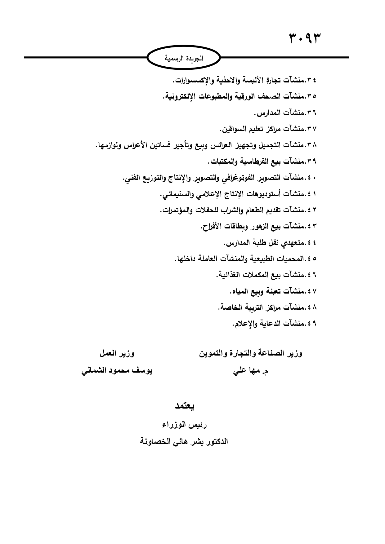 حصادنيوز-أعلنت الحكومة في عدد الجريدة الرسمية الأحد، القطاعات والأنشطة الاقتصادية الأكثر تضرراً أو غير المصرح لها بالعمل بسبب جائحة كورونا لشهر تموز من العام 2021.