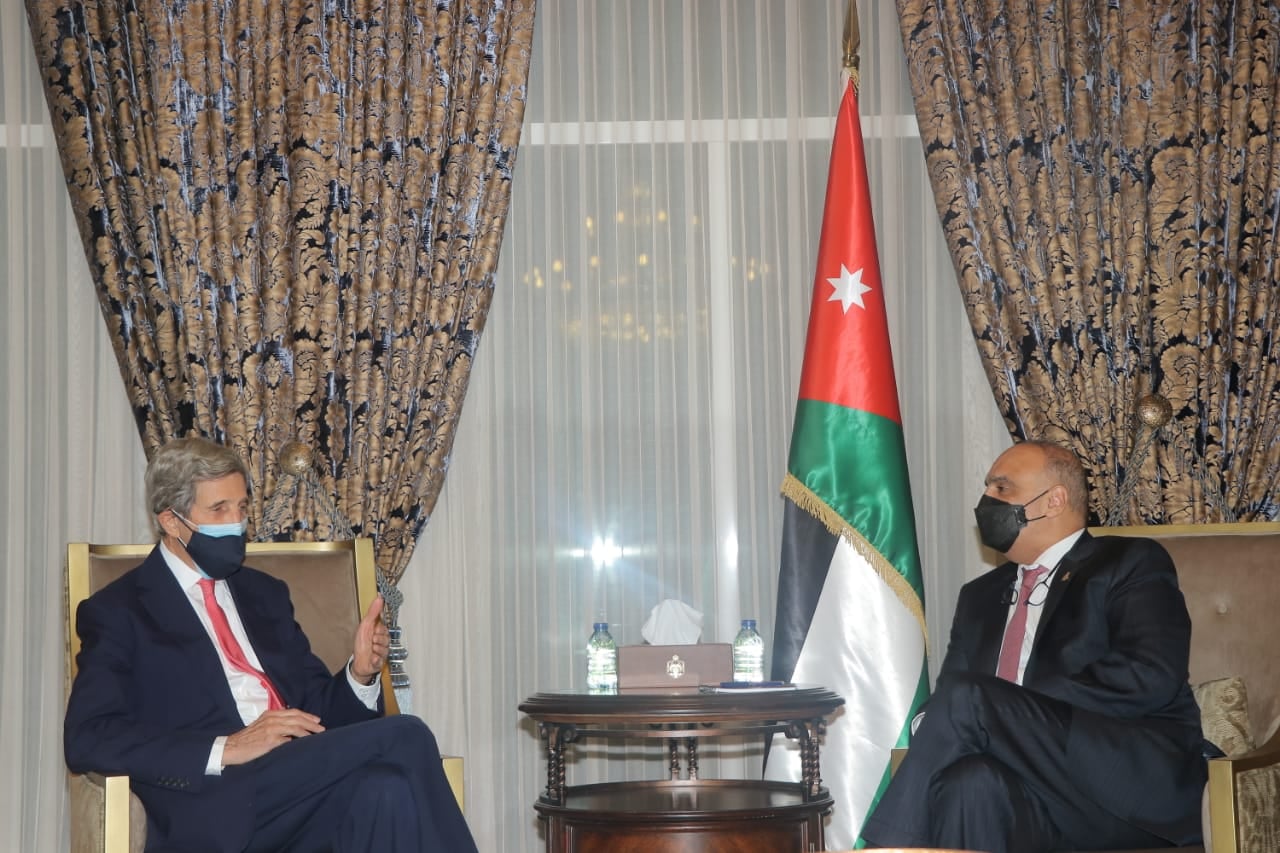حصادنيوز-استقبل رئيس الوزراء، الدكتور بشر الخصاونة، في مكتبه برئاسة الوزراء، مساء الأحد، المبعوث الخاص للرئيس الأميركي لشؤون المناخ جون كيري.