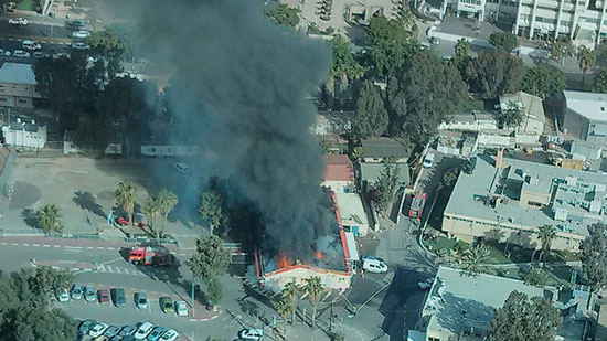 وقالت مصادر من قوات الإطفاء الإسرائيلية إن طواقمها شارفت على السيطرة على النيران، مشيرين إلى عدم وقوع إصابات بشرية، ولكن لحقت أضرار مادية جسيمة فى المكان.