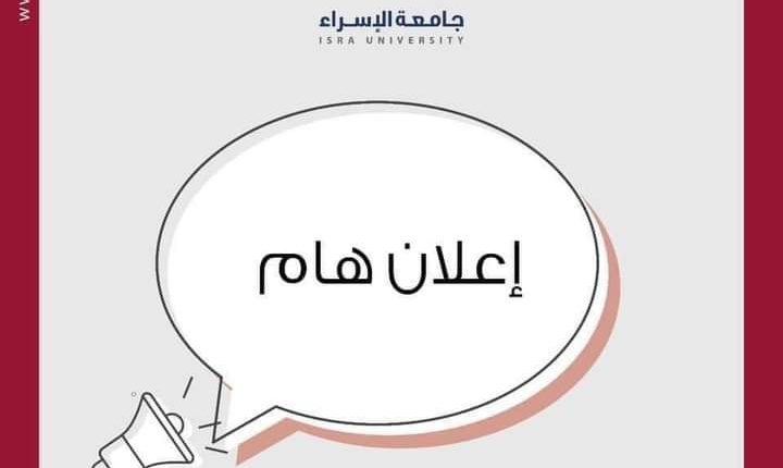 تأخير دوام جامعة الإسراء ليوم الاحد الموافق ٢٠٢٢/١/٣٠