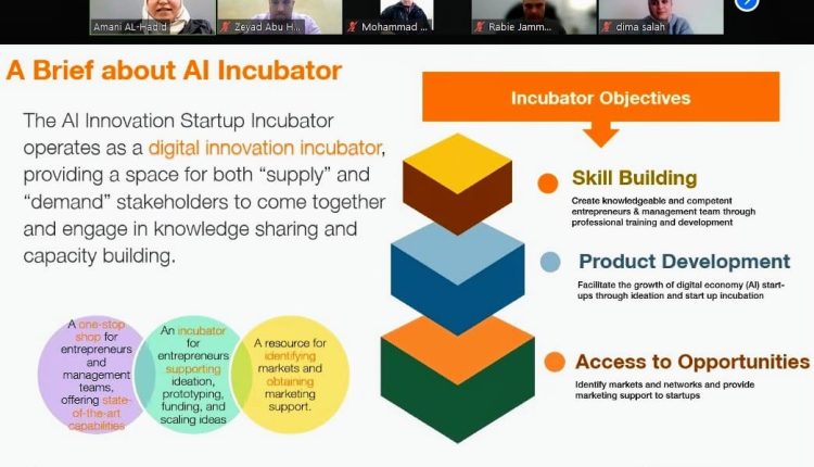 وتعد حاضنة الذكاء الاصطناعي إحدى المبادرات الريادية المموّلة بالشراكة مع الصندوق الأردني للريادة والتي تم تصميمها بالشراكة مع جامعة الأميرة سمية للتكنولوجيا، لتعزيز فرص الرياديين والفِرق المنضمة للحاضنة في مرحلة تطوير الأفكار والشركات الناشئة في المرحلة المبكرة، بالإضافة إلى تمكينهم من الحصول على تمويل استثماري والوصول إلى فرص التشبيك بما يتيح لهم تطوير حلول تخدم التنمية الاقتصادية والاجتماعية.