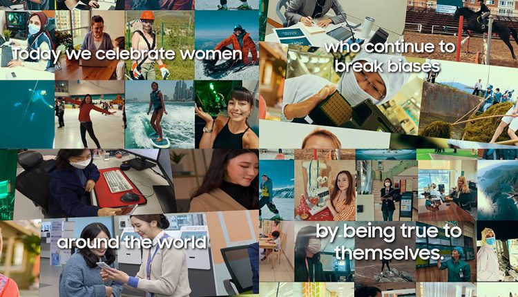 واحتفالاً باليوم العالمي للمرأة هذا العام، نظمت سامسونج حملة عالمية لموظفيها لتقديم صور لهم وتشكيل صورة رسمية لهذا الحدث، مع استخدام كل واحد منهم ذراعيه على شكل الحرف (X)، للجمع بين موظفي الشركة من جميع أنحاء العالم تقريباً، والخروج بعمل جماعي يدل على التضامن. وإضافة إلى ذلك، أعدت الشركة مقطع فيديو خاصاً باليوم العالمي للمرأة، ويظهر موظفات سامسونج وهن يتابعن حياتهن وروتينهن اليومي، ويقدمن دعمهن لقضية اليوم العالمي للمرأة.
