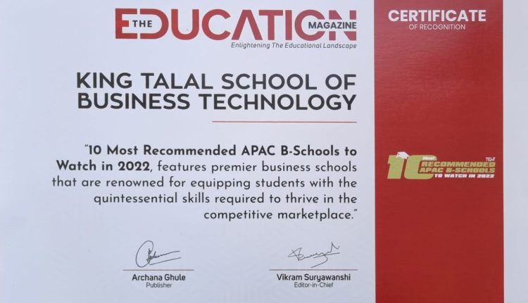 كلية الملك طلال لتكنولوجيا الأعمال في جامعة الأميرة سمية للتكنولوجيا ضمن أفضل 10 كليات أعمال في آسيا و الباسيفيك
