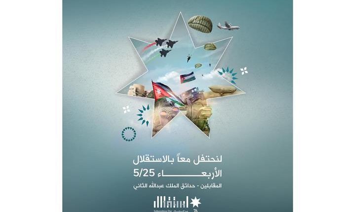 طائرات F16، وفريق صقور الأردن الملكي، ونادي الطيران الشراعي الملكي الأردني، بالإضافة إلى عرض لفريق القفز الحر – العمليات الخاصة، وسيتم إطلاق العلم الأردني الطائر في سماء عمان احتفالاً بهذه المناسبة، فيما سيُختتم الاحتفال بعرض ضخم للألعاب النارية.