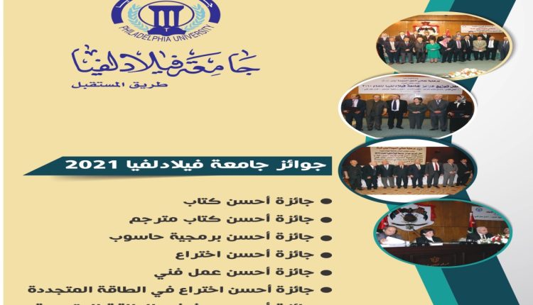 حصاد نيوز _ برعاية معالي الاستاذ الدكتور مروان كمال تقيم جامعة فيلادلفيا حفل تسليم جوائز الجامعة للعام 2021 وذلك في تمام الساعة الخامسة من مساء يوم الأربعاء 22/6/2022 في المركز الثقافي الملكي – قاعة المؤتمرات .