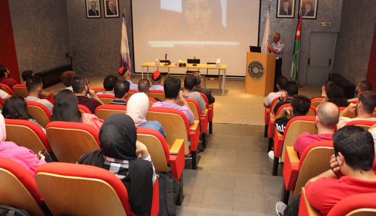 وعلى هامش اللقاء قدم النقيب حابس العبادي محاضرة بعنوان ” واقع السلامة المرورية في الأردن” نظمتها عمادة شؤون الطلبة في الجامعة بالتعاون مع المعهد المروري الأردني، بحضور طلبة الجامعة.