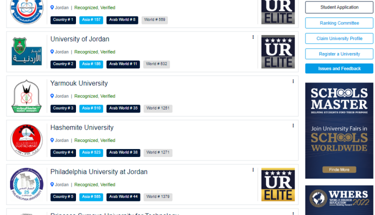 “فيلادلفيا” الأولى بين الجامعات الأردنية الخاصة حسب تصنيف UNIRANKS الأسترالي لتقييم الجامعات والمعاهد العالمية