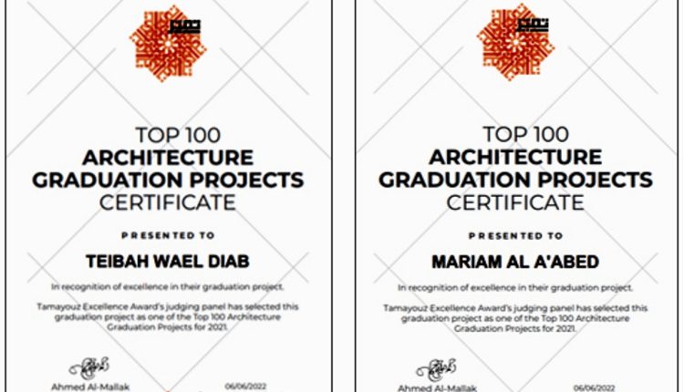 مشروعا تخرّج لطلبة هندسة العمارة “عمان الاهلية” ضمن قائمة أفضل 100 مشروع على مستوى العالم