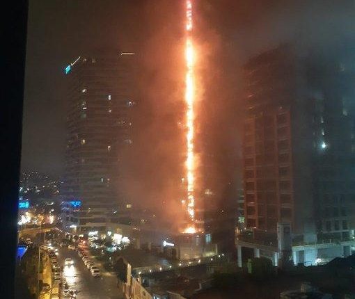 حريق ضخم في بناء من 24 طابقا باسطنبول