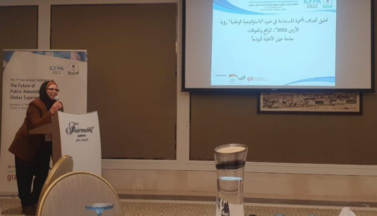 حصاد نيوز _ تحت رعاية معالي وزير الاقتصاد الرقمي والريادة معالي السيد احمد قاسم ذيب الهناندة، شاركت الأستاذة الدكتورة سوسن بدرخان رئيسة قسم العلوم الإنسانية والاجتماعية في جامعة عمان الأهلية بمؤتمر جامعة اليرموك الذي عقد في عمان (فندق فيرمونت) وذلك خلال يومي الأربعاء والخميس في الفترة الواقعة ما بين (26 – 27 /10/2022) تحت مسمى “المؤتمر الدولي الأول “مستقبل الإدارة العامة: تجارب عالمية The 1st International Conference on The Future of Public Administration: Global Experiences ، وكان عنوان البحث “تحقيق اهداف التنمية المستدامة في ضوء الاستراتيجية الوطنية – رؤية الأردن 2025 الواقع والتحديات ، جامعة عمان الاهلية أنموذجاً”، حيث تم عرض جهود جامعة الاهلية من تحقيق اهداف التنمية المستدامة، وما المعوقات التي واجهت الجامعة في تحقيق هذه الأهداف.