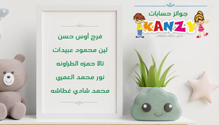 وقد أعلن البنك فوز كل من الطفلة فرح حسن، والطفلة لين عبيدات، والطفلة تالا الطراونة، والطفلة نور العمري، فضلاً عن الطفل محمد غطاشه، بالجائزة النقدية لحساب توفير الأطفال “كنزي”.