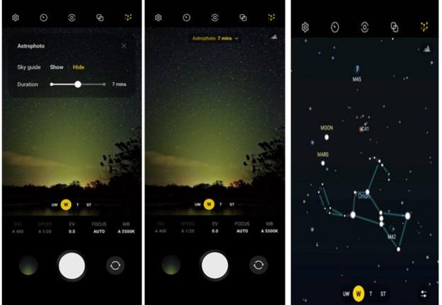 ولالتقاط صورة فلكية مذهلة، يجب عليك أولاً اختيار الموقع الصحيح والظروف المواتية والتوقيت والضوء المناسبين. وعند استخدام الإعدادات في تقنية Astrophoto على هاتف S22، تساعدك الكاميرا تلقائياً على تحسين مختلف هذه العوامل. عندها يتعين عليك تشغيل دليل السماء لتحديد موقع وحركة الأبراج والأنظمة الشمسية ومجموعات النجوم والسدم. وستعتمد الكاميرا على تقنية تقسيم المشهد عن طريق الاستعانة بتكنولوجيا الذكاء الاصطناعي المتقدمة، وتحديد الإعدادات تلقائياً، بما في ذلك سرعة الغالق ومستوى الحساسية للضوء لالتقاط أفضل الصور الممكنة. ويمكنك أيضاً استخدام المعالجة متعددة الإطارات لالتقاط الصور خلال فترة زمنية محددة، والحصول على صور جميلة للنجوم، لتبدو وكأنه تم التقاطها باستخدام معدات احترافية من الدرجة الأولى.