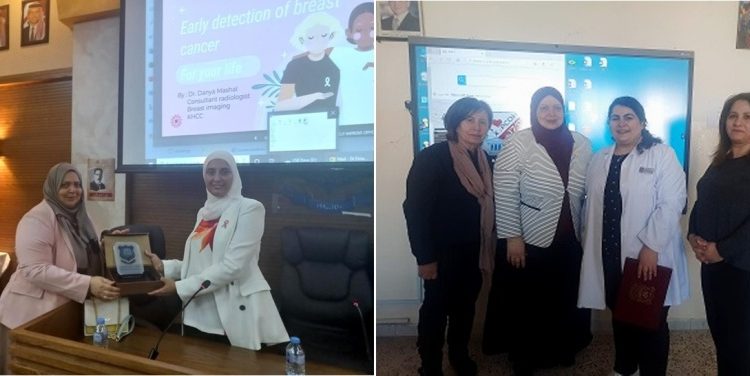 حصاد نيوز _ نفذ مركز صحة المرأة التابع لكلية التمريض في جامعة عمان الأهلية العديد من الفعاليات مؤخرا كان من بينها تنظيم محاضرة توعوية صحية بعنوان “أهمية الاكتشاف المبكر لسرطان الثدي من أجل حياتك” والتي قامت بإلقائها الدكتورة دانيا مشعل أخصائية الاشعة التشخيصية في مركز الحسين للسرطان.