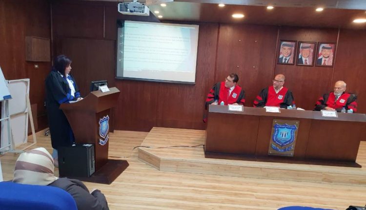 وتألفت لجنة المناقشة من الأستاذ الدكتور أحمد يوسف عريقات (قسم إدارة الاعمال) رئيساً ومشرفاً ، والأستاذ الدكتور يعقوب حيدر حمدان ( قسم إدارة الاعمال) عضواً داخلياً ، والدكتور إياد بشيرحياصات ( كلية الاعمال بجامعة البلقاء التطبيقية) عضواً خارجياً، وقد أجيزت رسالة الماجستير مع بعض التعديلات الطفيفة .
