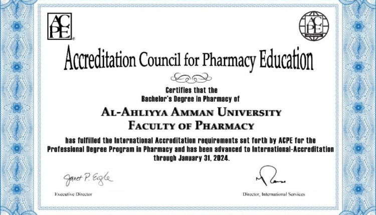 صيدلة عمان الاهلية تحصل على اعتماد ACPE الأمريكي
