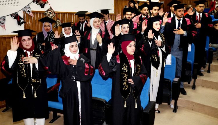 حصاد نيوز _ تحت رعاية رئيس الجامعة بالوكالة الاستاذ الدكتور خالد السرطاوي وعميدة كلية التمريض الدكتورة ميادة دعيبس وحضور أعضاء الهيئتين التدريسية والإدارية في كلية التمريض، أقيم حفل أداء القسم لدفعة خريجي الفصل الاول للعام الدراسي 2022/2023 يوم الخميس الموافق /16/2/2023 .حيث ألقت عميدة الكلية الدكتورة ميادة دعيبس كلمتها التي تضمنت نصائح وإرشادات وتوصيات العمادة لمرحلة ما بعد التخرج و عبرت بكلمتها عن امتنانها لجهود المدرسين كافة لتخريج طلبة متميزين .كما وكرمت العميدة الطلبة الاوائل بشهادات تقديرية وسلمت الطلبة الخريجين دروع تقديرية بهذه المناسبة وفي الختام عرض فيلم يلخص المسيرة الاكاديمية و الجامعية و حتى بلوغ التخرج.