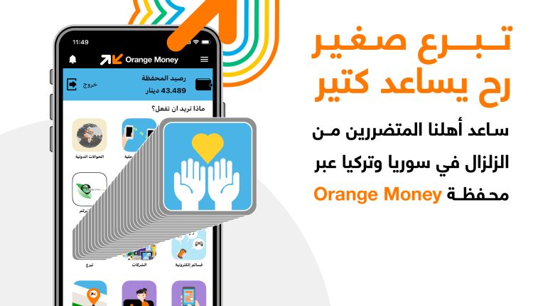 هذا وسهّلت الشركة عملية التبرّع للمتضررين عبر المحفظة الإلكترونية Orange Money، عن طريق اختيار خانة “تبرّع” من الصفحة الرئيسية، ثم تحديد الجهة المتبرع لها “الهيئة الخيرية الأردنية الهاشمية” واختيار خانة “استجابة طارئة لزلزال سوريا” أو “استجابة طارئة لزلزال تركيا” لتقديم الدعم مباشرة، إضافة إلى تمكين مستخدمي المحفظة من مشتركي الشبكات كافة من المشاركة في حملة تكية أم علي لدعم المنكوبين للتبرّع بقيمة الطرود الغذائية الطارئة لسوريا وتركيا، بالتعاون مع الهيئة الخيرية الهاشمية، من خلال خانة “حملة إغاثة سوريا وتركيا”.