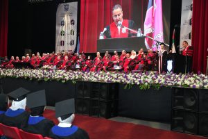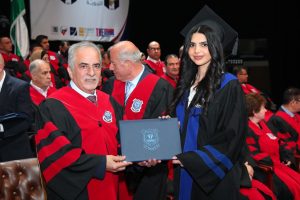 أهنئكم بالأصالة عن نفسي ونيابة عن زملائي أعضاء الهيئتين التدريسية والإدارية وأهنأ أهلكم وأحباءكم وأصدقاءكم بكم. ها أنتم تقطفون اليوم ثمار سنوات من العمل الجادّ على مقاعد الدراسة، فهنيئا لكم ما صنعت أيديكم، ولا يفوتني تقديم رسالة شكر وتقدير وعرفان للآباء والأمهات اللذين بذلوا الغالي والنفيس للوصول الى هذا اليوم.