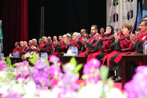 وقد بدىء الحفل بالسلام الملكي ثم تلاوة عطرة من الذكر الحكيم تلاها الطالب ادم الحديدي ” كلية إدارة الضيافة وفنون الطهي ” .