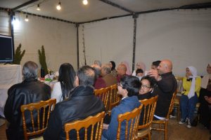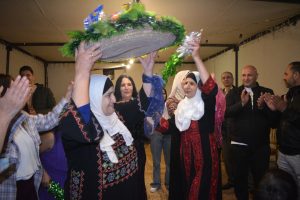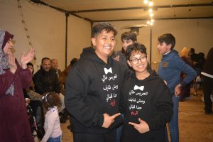 وبالوقت ذاته اقيمت الافراح، بمبادرة من الأحبة، في منزل والد العريس سمير عبد الفتاح الرمحي “ابو عبود” وزوجته الاعلامية رضى عليان في الاردن، حيث تفاعلوا مع وقائع الفرح على شاشة تلفزيون عبر السكايب وشاركهم الفرحة عدد من الاقارب والأصدقاء.