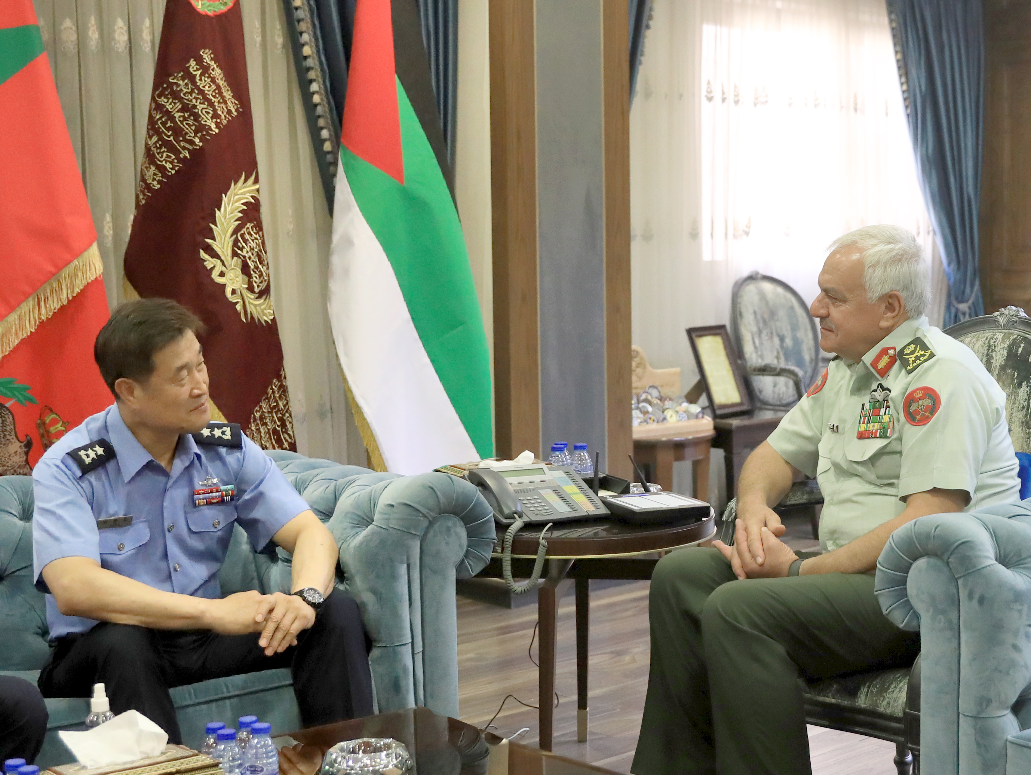 وبحث اللواء الركن الحنيطي مع الضيف، بحضور عدد من كبار ضباط القوات المسلحة والملحق الدفاعي الكوري في عمّان، سبل تعزيز العلاقات الثنائية والتعاون والتنسيق العسكري المشترك بما يخدم مصلحة القوات المسلحة في البلدين الصديقين.