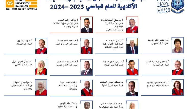 ** أسرة جامعة عمان الأهلية تبارك لمجلس العمداء الجديد وتتمنى له التوفيق والنجاح.