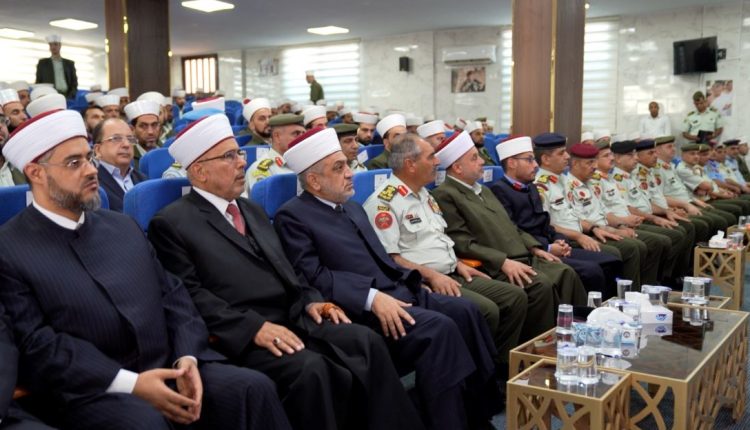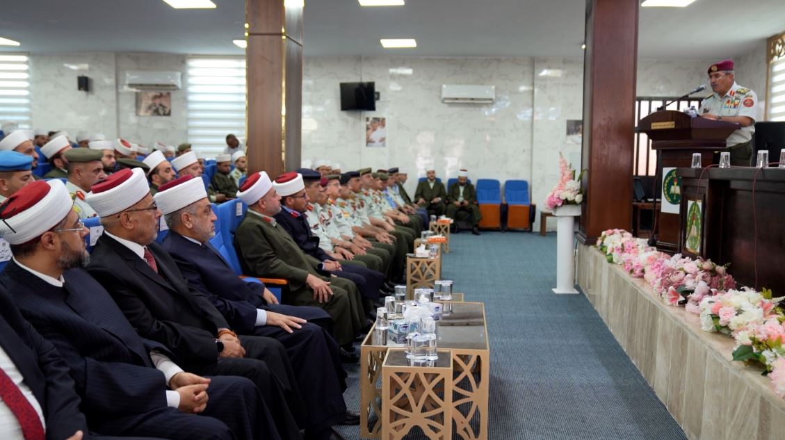 وبيّن مفتي القوات المسلحة العقيد إمام حسن المخاترة “أن مديرية الإفتاء أولت اهتماماً كبيراً بشأن الأسرة المسلمة، فهي لا تألو جهداً في المحافظة عليها والذود عنها، وذلك ببنائها على مبادئ الإسلام ودعائمه وأسسه، والابتعاد عن أسباب الفُرقة والنزاع التي تؤدي إلى تفككها وهدمها، ومعالجة الإشكالات التي تعترض قيامها، وتهدد وجودها واستمرارها، ومحاولة ووضع الحلول التي تكفل تماسكها واستقرارها من خلال تأهيل العلماء والأئمة الأكفاء، الذين لا يختزلون جهداً في توجيه الفكر وغرس القيم والأخلاق، ويحملون على عاتقهم مسؤولية توجيه فكر من يحمل السلاح في جيشنا العربي المصطفوي، وبقية أجهزتنا الأمنية التي تشكل سياج الوطن ودرعه الحصين”.