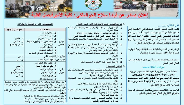 اعلان صادر عن قيادة سلاح الجو الملكي / كلية الامير فيصل الفنية