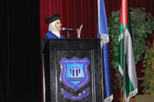· ثم ألقت الطالبة شروق أبو رمان من كلية الدراسات العليا كلمة الخريجين والخريجات رحبت فيها براعي الحفل وبرئيس هيئة المديرين وبرئيس الجامعة والعمداء والاساتذة والحضور ، وخاطبت زملائها وزميلاتها الخريجين قائلة :