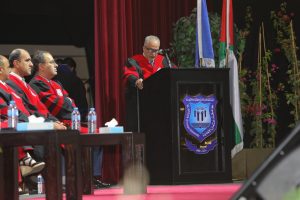 · وقد القى كلمة الجامعة الاستاذ الدكتور ساري حمدان رئيس الجامعة ،حيث رحب فيها براعي الحفل وصحبه مخاطبا الخريجين والحضور قائلا :