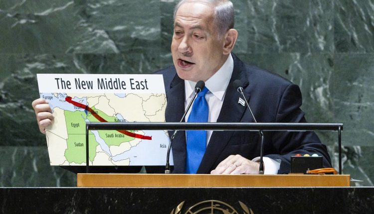 حصادنيوز-كرر رئيس الوزراء الإسرائيلي بنيامين نتنياهو، خلال خطابه، ضمن المناقشة العامة للدورة السنوية الـ78 للجمعية العامة للأمم المتحدة في نيويورك، أن الخطر الآتي من إيران يمكن أن يجمع بين إسرائيل والدول العربية.
