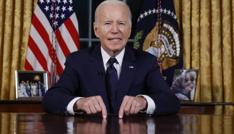 وقال بايدن في خطابه المتلفز: «لا يمكننا أن نسمح لسياسات حزبية غاضبة وتافهة بأن تقف في طريق مسؤوليتنا كأمّة عظيمة. لا يمكننا أن نسمح، ولن نسمح، لإرهابيين مثل حماس ولطغاة مثل بوتين بأن ينتصروا. أنا أرفض السماح بحدوث ذلك».