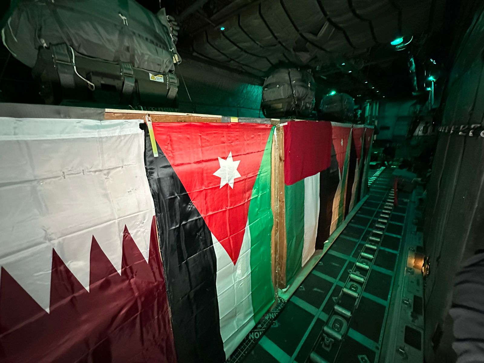 حصادنيوز-صرح مصدر عسكري مسؤول في القيادة العامة للقوات المسلحة الأردنية -الجيش العربي، أنه وبتوجيهات ملكية سامية، قامت طائرة تابعة لسلاح الجو الملكي،السبت، بإنزال مساعدات طبية عاجلة للمرة الثانية بواسطة مظلات للمستشفى الميداني الأردني غزه /76، جاءت عملية الإنزال بالتعاون مع دولة الإمارات العربية المتحدة ودولة قطر الشقيقتين، لتعزيز وتطوير إمكانيات المستشفى وزيادة قدرة الكوادر الطبية في تقديم خدمات صحية وعلاجية للتخفيف عن الأهل في قطاع غزة.