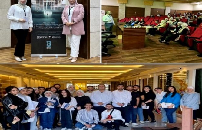فمن جهة شاركت الدكتورة سمر أبو صالح عضو هيئة التدريس في القسم مع الباحثة دانيا حزام خريجة القسم (برنامج الماجستير)؛ في فعاليات المؤتمر الدولي ASCAAD 2023، الذي نظمته كلية العمارة والتصميم في جامعة البتراقبل أيام ، وكانت المشاركة بورقة مستلّة من رسالة الماجستير للباحثة دانيا حزام، بعنوان: تطبيق العناصر التراثية البصرية لتعزيز الهوية في التصميم الداخلي المعاصر “حالة الدراسة : مبنى الرئاسة في جامعة اليرموك”، وأكدت الورقة البحثية على ضرورة الاهتمام بتطبيق العناصر التراثية في التصميم الداخلي للحفاظ على الهوية الثقافية والذي بدوره يسهم بشكل كبير في تعزيز الهوية البصرية للجامعة.