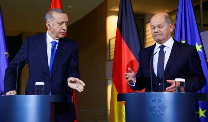 وقال جوزيف شوستر لوكالة الأنباء الألمانية في العاصمة برلين بالنظر إلى المؤتمر الصحافي لشولتس وأردوغان لدى زيارة الأخير لبرلين: “من الواضح أن المستشار الألماني أوضح لأردوغان أن التصريحات الأكثر سخافة بين تصريحاته التي صدرت خلال الأسابيع الأخيرة يجب ألا يتم الإدلاء بها على الأراضي الألمانية”.