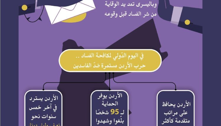 في اليوم العالمي لمكافحة الفساد، والذي يحتفل به العالم يوم التاسع من شهر كانون الثَّاني من كلِّ عام، عادت وكالة الانباء الأردنية (بترا)، سبع سنوات إلى الوراء وتحديدًا إلى العام 2016، للبحث في حرب الأردن على الفساد والوقاية منه والمستمرة منذ 18 عامًا، ليتبين لها أنَّ هيئة النَّزاهة ومكافحة الفساد لم تغمض لها عين طيلة آخر 2555 يومًا استطاعت فيها استرجاع مال عام من فم الفاسدين خلال الفترة 2019-2022 وصل إلى نحو 517 مليون دينار بطريقة مباشرة وغير مباشرة.