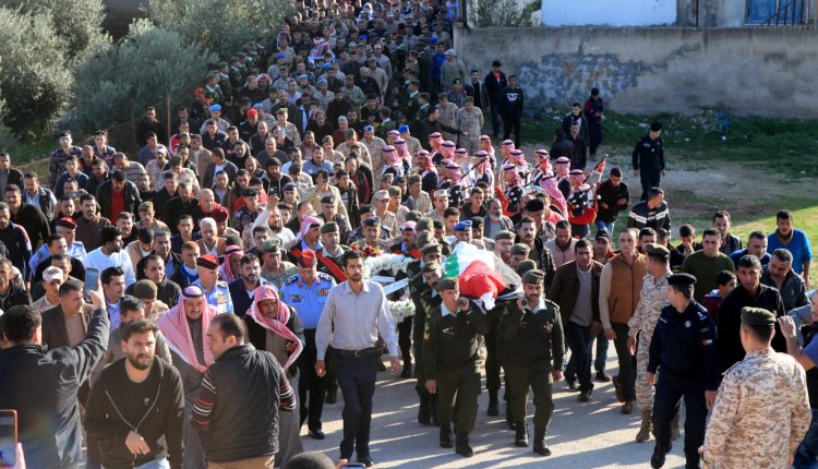 حصادنيوز-شيّعت القيادة العامة للقوات المسلحة الأردنية – الجيش العربي، امس الثلاثاء، جثمان شهيد الواجب الوكيل أول إياد عبد الحميد النعيمي، بعد الصلاة عليه في مسجد صدام حسين بمنطقة الحصن في محافظة إربد، والذي استشهد فجر اليوم إثر اشتباك مسلح لقوات حرس الحدود مع عشرات المهربين في المنطقة العسكرية الشرقية.