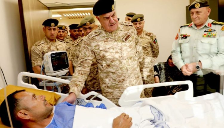 واطمأن اللواء الركن الحنيطي على الوضع الصحي للمصاب، والتي وصفت حالته العامة بالمستقرة، موجهاً بضرورة تقديم كافة أشكال الرعاية الصحية والعلاجية، متمنياً الشفاء العاجل له.
