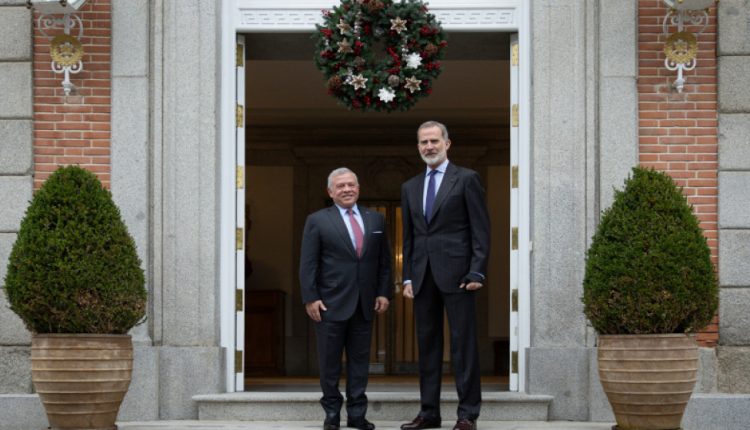 حصادنيوز-التقى جلالة الملك عبدالله الثاني في مدريد، جلالة الملك فيليب السادس ملك إسبانيا، في إطار الجهود المبذولة لحشد الدعم الدولي لوقف إطلاق النار في غزة.