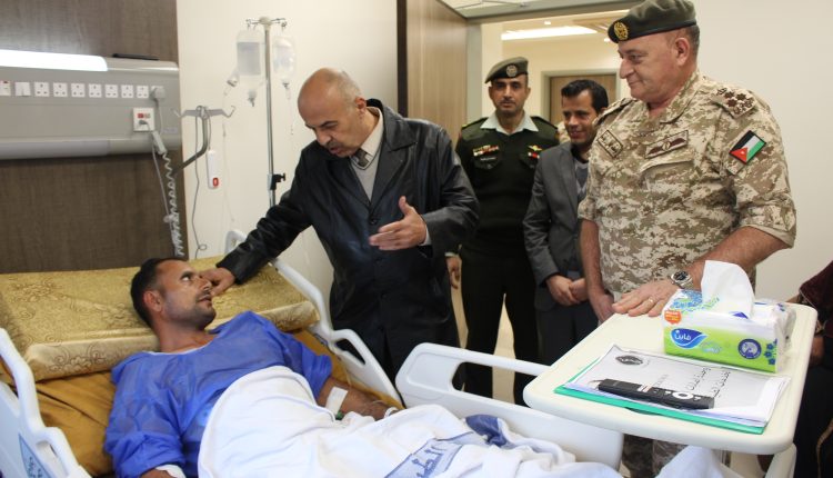 مدير الهيئة الهاشمية للمصابين العسكريين يعود المصاب في اشتباك مع مهربين