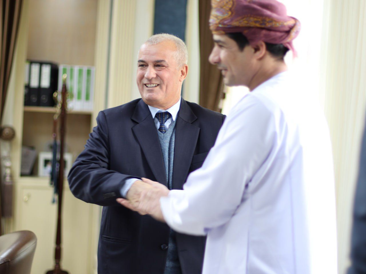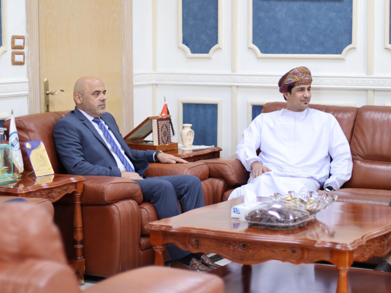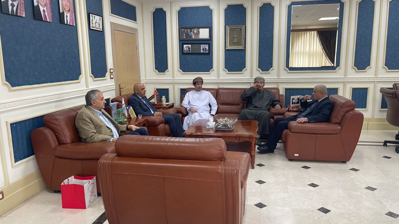 حصادنيوز-استقبل رئيس جامعة فيلادلفيا الأستاذ الدكتور عبدالله محمد الجراح في مكتبه سعادة الشيخ فهد بن عبدالرحمن العجيلي سفير سلطنة عُمان لدى المملكة ، يرافقه السيد سالم بن سليمان الوهيبي السكرتير الأول والقائم بأعمال القسم الثقافي في السفارة والدكتور عبدالله عبيدات رئيس القسم الأكاديمي في الملحقية الثقافية العمانية لبحث سبل تعزيز علاقات التعاون الأكاديمية والبحثية والطلابية.