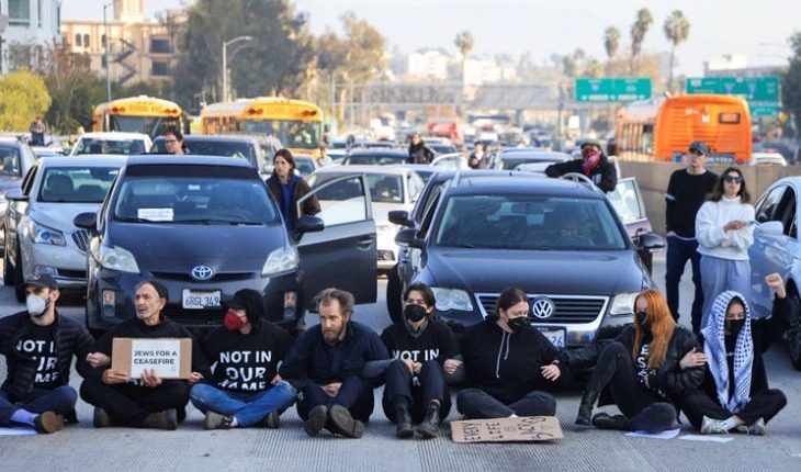 وأعلنت مجموعة تدعى IfNotNow Los Angeles ( (إف نوت ناو/ “إن لم يكن الآن”) عن خطط لتنظيم احتجاج في وسط المدينة صباح الأربعاء للمطالبة بوقف إطلاق النار في الحرب الإسرائيلية على غزة، على الرغم من أن المنظمة لم تشر إلى أنها تعتزم إغلاق الطريق السريع.