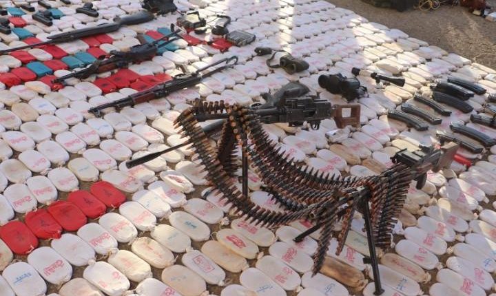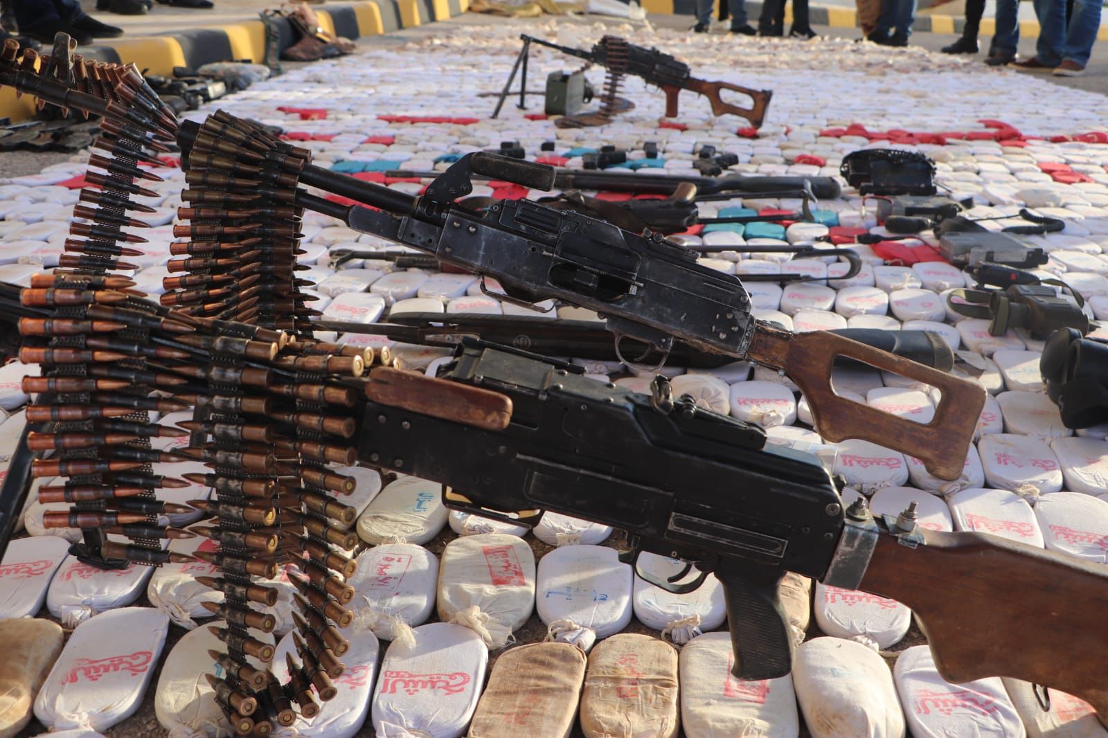 وتابع الناطق الإعلامي أنه ضبط بحوزة المقبوض عليهم كميات كبيرة من المواد المخدرة: 720 الف حبة مخدرة، و 1565 كف حشيش، و21 سلاحا نارياً، وكميات كبيرة من الذخائر، وأجهزة اتصال ومناظير.