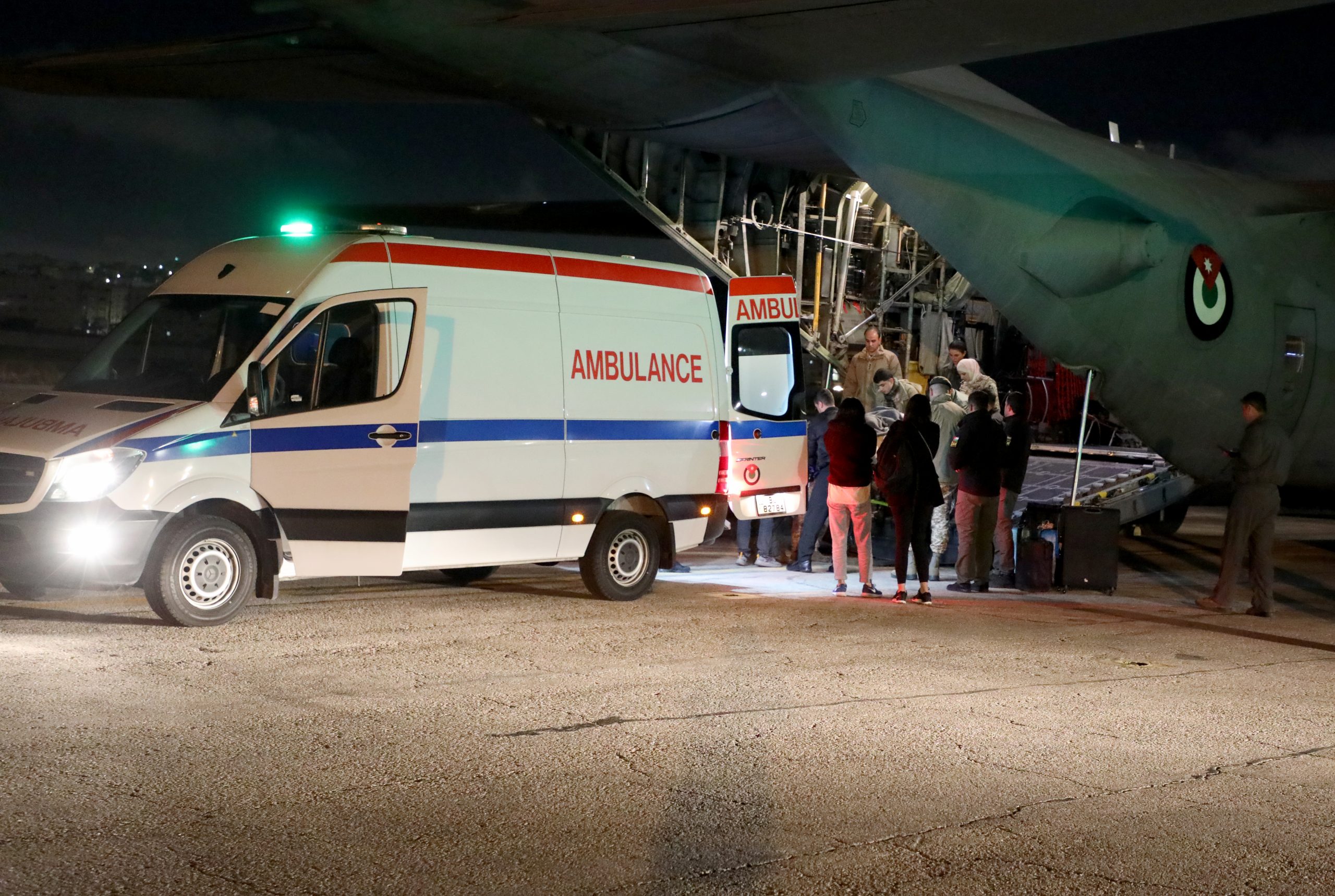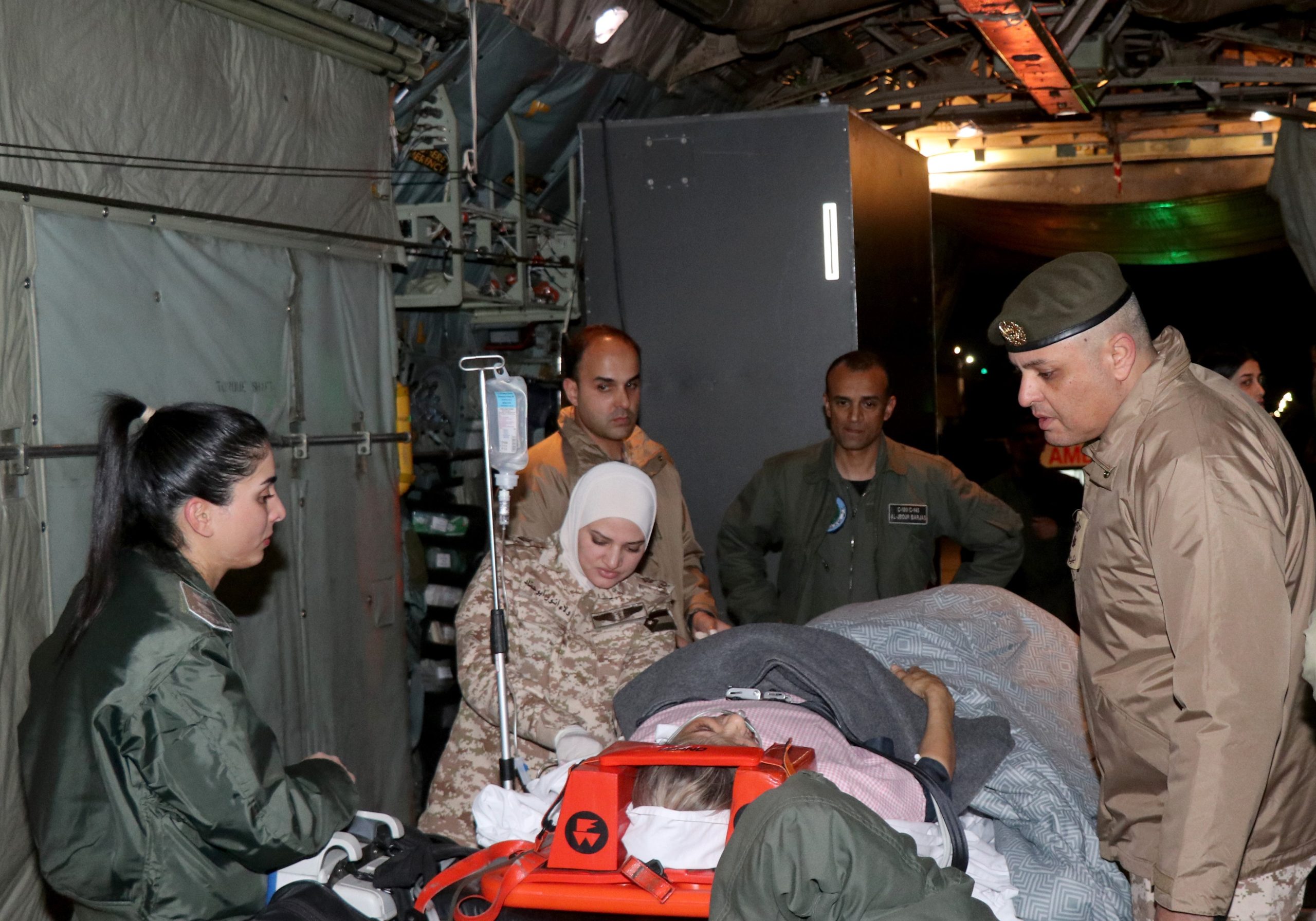 وبيّن قائد طبابة سلاح الجو الملكي المقدم الطبيب معاذ المومني أنه تم إخلاء 4 أفراد من عائلة أردنية عبر طائرة مزودة بطاقم طبي متخصص، وأن حالة أحد المصابين خطيرة، فيما تبين أن الحالة العامة للباقين متوسطة.