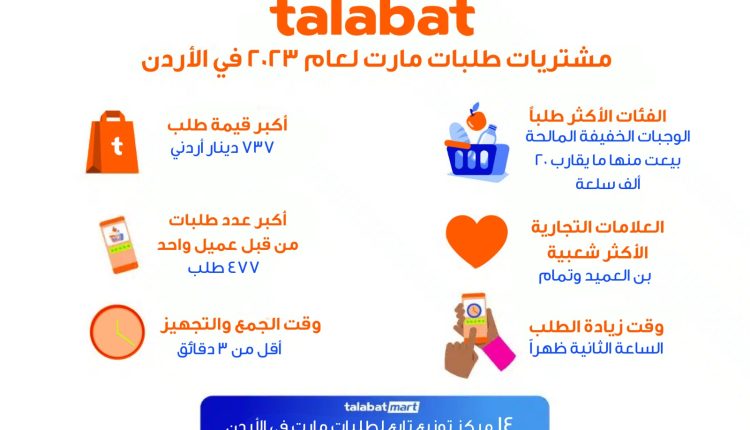 سجلت طلبات مارت في الأردن أكبر طلب بقالة لعام 2023 بتاريخ 4 حزيران، وذلك بقيمة 737 ديناراً أردنياً، وهي القيمة التي تجاوزت الأرقام القياسية لطلبات مارت.