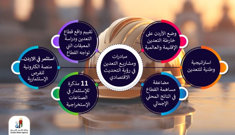 وكانت وزارة الاستثمار أطلقت منصة الكترونية بعنوان “استثمر في الأردن” تضمنت العديد من مشاريع التعدين مثل تعدين واستخراج رمال السيليكا، استخراج الحجر الجيري، تعدين واستخراج الدياتومايت، استكشاف واستخراج الكاولين، استكشاف واستخراج الدولومايت، تعدين واستخراج الفلدسبار، استكشاف واستخراج الصخر الزيتي، واستكشاف البازلت وتصنيع الياف البازلت.