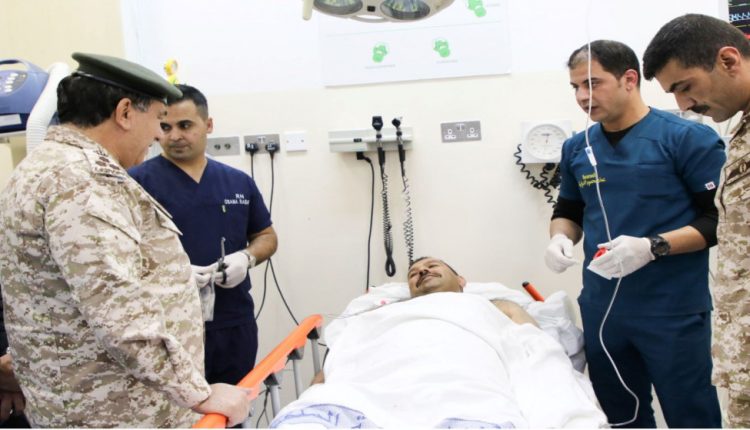 وكان في استقباله مساعد رئيس هيئة الأركان المشتركة للعمليات والتدريب، للاطمئنان على حالة المصاب الأولية والتي كانت مستقرة، وسيتم عمل جميع الفحوصات المخبرية والشعاعية وإدخاله إلى القسم المعني لمتابعة حالته الصحية.