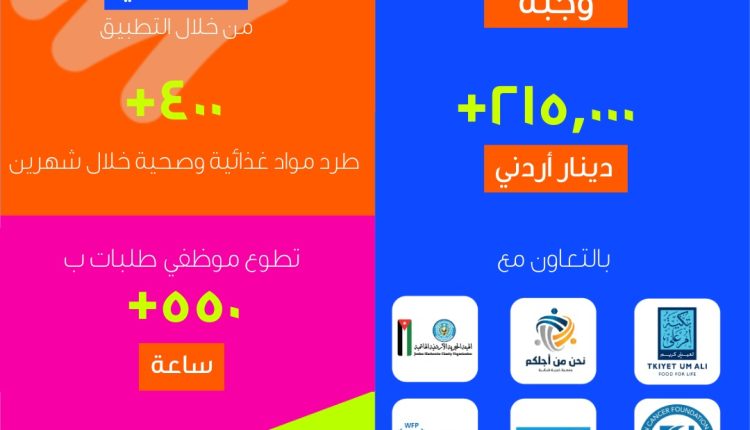 هذا وقد تمكنت “طلبات” الأردن خلال موسم رمضان وعيد الفطر 2023 من تسهيل التبرع بما زاد على 40 ألف دينار أردني، إلى جانب تقديم أكثر من 15 ألف وجبة رمضانية من خلال التبرعات عبر التطبيق بدعم ومساهمة من العملاء.