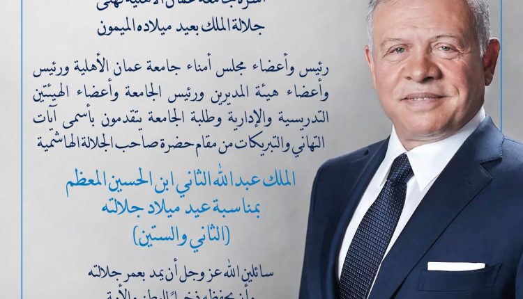 أسرة جامعة عمّان الأهلية تهنئ جلالة الملك بعيد ميلاده الميمون